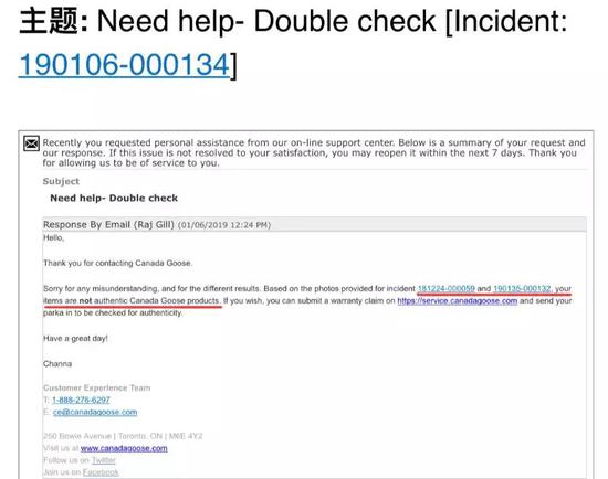 矛盾的焦点集中于,同样采取邮件方式鉴定真伪,加拿大鹅官方两次鉴定的结果不一样。