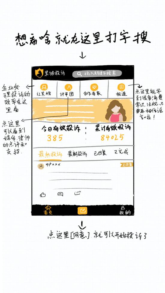 [导读]这个消费维权法宝,过年带回家送爸妈来源:黑猫投诉保健品起反作用?网购名牌变山寨?买到过期生鲜?黑猫(tousu sina cn)在手,投诉不愁,妈妈的消费维权,有ta就足够。奸商别走,我要放猫啦!1、下载、注册、登录,全不会?让我来手把手教您吧:应用商店搜“黑猫投诉”,使用微博账号登录,或用手机号码注册。2、黑猫App主界面长这样滴,“评审团”“报道”“有效投诉”等都可以在这里找到。