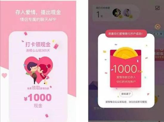 [导读]一款名为“爱情银行”的App最近在年轻人的社交圈颇为流行。这款App宣称,一对情侣只要连续签到365天,就可以获得1000块钱的提现奖励。然而近期大量用户投诉,在坚持签到300多天后,爱情银行App突然改变签到规则、增加难度,导致用户断签。用户吐槽,感觉自己被耍了。《天天315》今日聚焦:“爱情银行”App的营销套路对用户公平吗?