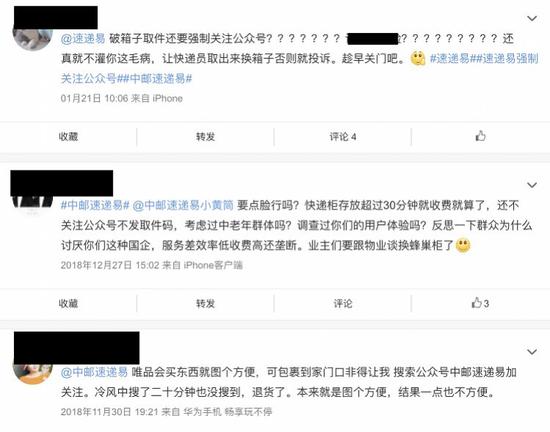不仅如此,不少消费者还质疑:如今取个快递,还必须得关注微信公众号。 “中枪”的不仅有丰巢,还有中邮速递易等。