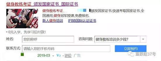 ▲北京一家健身学院在网上发布的考证广告。网络截图