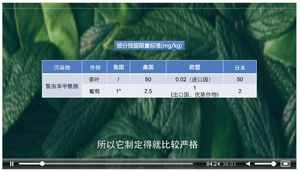 视频截图:氯虫苯甲酰胺在不同国家的残留限量标准