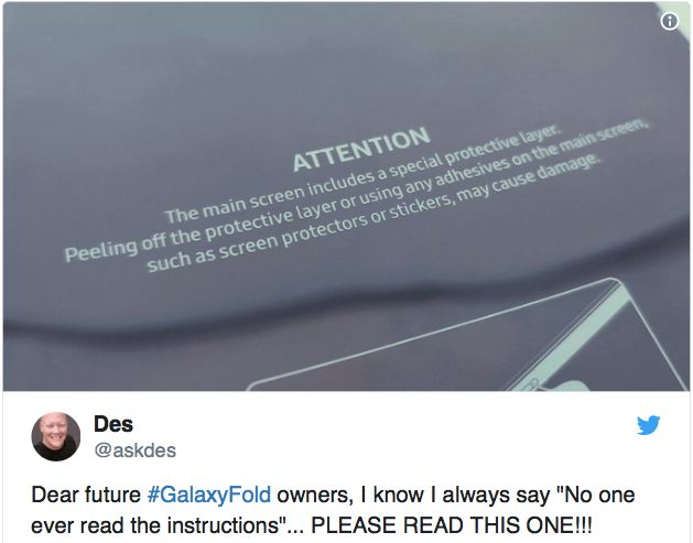 2天内1.3万的折叠屏手机阵亡!三星:千万别撕那层膜