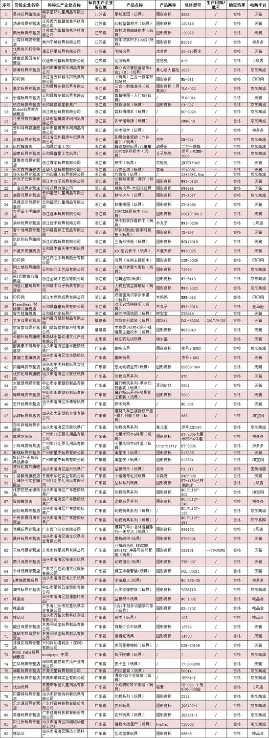 网售玩具产品质量国家监督专项抽查合格产品及其企业名单