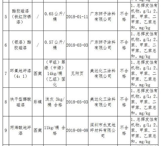 深圳市市场监督管理局2018年建筑装饰装修涂料产品质量监督抽查发现不合格项目产品及企业名单