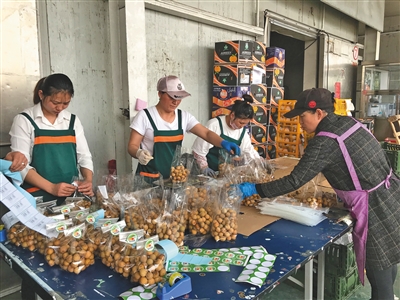 工人正在包装泰国龙眼。实习生 姚远 摄