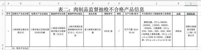 盒马鲜生大红肠抽检不合格 大肠菌群超标85倍