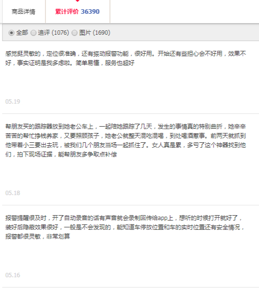 记者在国内某主流电商平台上输入“定位”关键词,结果出现多达100页的商家,大多数商家都在卖一种“定位器”。