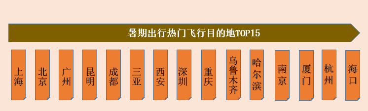 据《报告》预测,上海、北京、广州、昆明、成都、三亚、西安、深圳、重庆、乌鲁木齐、哈尔滨、南京、厦门、杭州、海口跻身暑期十五大热门飞行目的地。其中,乌鲁木齐是首次进入目的地排行榜前十名。