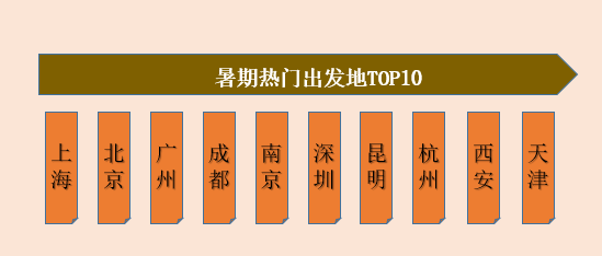 那么,哪些城市的旅客出游力最强?《报告》指出,2019年暑期十大热门出发地分别为上海、北京、广州、成都、南京、深圳、昆明、杭州、西安、天津。