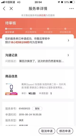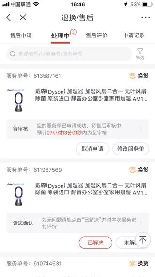 京东上买戴森加湿器连换4次货 消费者怀疑都是翻新货