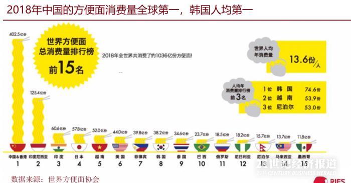 [导读]21世纪经济报道21财经APP卢杉上海报道2018年中国人吃泡面全球第一,猜猜第二名是哪个国家?酸奶和方便面是近年来国内消费品市场关注度一直很高的两个类别。市场上不断出新眼花缭乱的酸奶类型以及“康师傅”们业绩好了差了都是吸睛话题。根据里斯咨询近日发布的两个关于酸奶和方便面的报告,红了十年的酸奶今年要不行了,而持续大滑坡了好几年的方便面市场又看到了曙光。