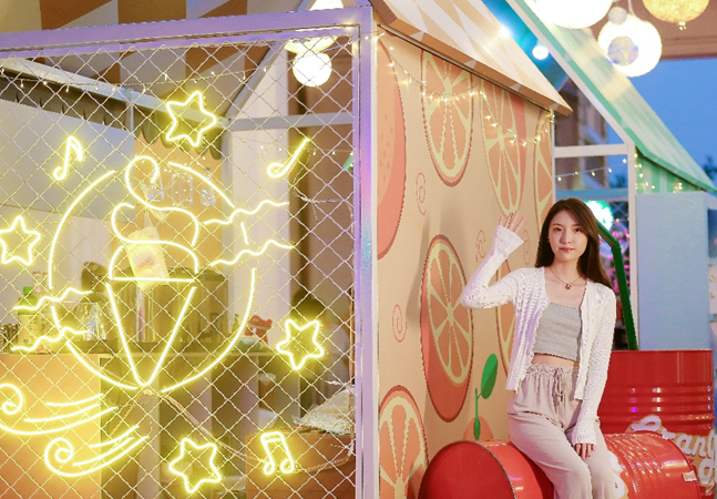 全新升级的彩虹广场,以清新马卡龙色系为主要色调的Ins网红打卡点靓丽呈现。超炫ins风的LED装饰流光溢彩,搭配香甜可旋转的甜甜圈、橙意满满的橘子汽水桶、粉红色炸裂的电话亭,满足顾客的“少女心”,可以说是街区夜拍的绝佳目的地。