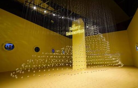 黄色水晶空间,是所有人都会为之沦陷的,明黄色的空间里,吊挂着一艘用3000颗水晶组成的潜水艇。这是展览为致敬披头士60年代名曲《Yellow Submarine》而量身打造的梦幻展品。