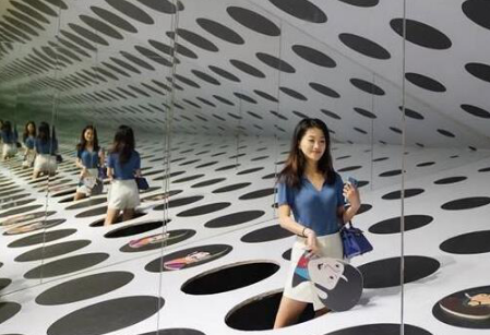 在黄色潜水艇一侧的房间里,欧普艺术大师Victor Vasarely用几何图形与镜子组合,重现了电影《黄色潜水艇》中的Sea of Holes场景。走入其中和无限延伸的空间融为一体,如梦似幻。