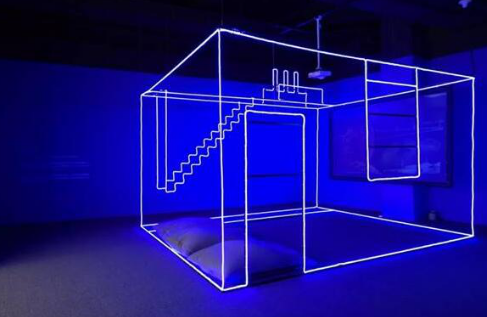 蓝色展区以艺术装置、灯光光影等手法勾勒出苹果大楼的天台造景用以呈现50年前那场震惊世界的天台音乐会。观看展览的自如客可以躺在懒人沙发上静静感受披头士最后一场公开演出作品:《Don’t let me down》