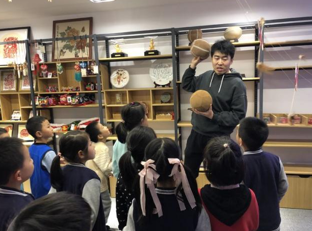 最后,同学们还参观了山东非物质文化遗产展示区,了解了山东各地的很多非物质文化。同学们对来自潍坊的巨型风筝,来自淄博的蹴鞠,已经用小米做成的山东电视台台标产生了极大兴趣。
