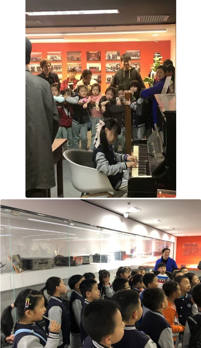 在展厅的中央,摆放了一台非常有年代感的雅马哈牌立式钢琴。1948年9月济南解放后,我华东军管会新闻出版部接管了国民党省政府的广播电台——山东广播电台,这架钢琴是其中被接管的物品之一。会谈钢琴的小朋友现场进行的演奏,博得了周围观众的阵阵掌声和喝彩。