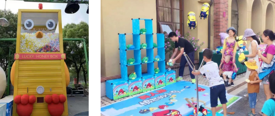 树洞大冒险之欢乐蹦床,让我们一起跳起来,放松身体、愉悦心情,带你回到童年的快乐体验;筑梦童缘之愤怒的小鸟,你需要亲自拉动弹弓,调整角度,瞄准目标发射,将可爱的玩具击倒在地面赢得胜利;捕捉森林精灵之眼疾手快,在这个温馨的圣诞,让你的心脏跳动起来吧;还有贩卖幸运的巨型扭蛋机,包含各种精美礼品及通关印章,等待你的开启;终极关卡之真人娃娃机,带你体验真实的快感,快来抓取属于你的惊喜吧。