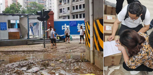 暴雨过后,阳光志愿者的脚步并未停歇,他们依然奔忙在清扫、维护交通等重建家园的“阵地”上。