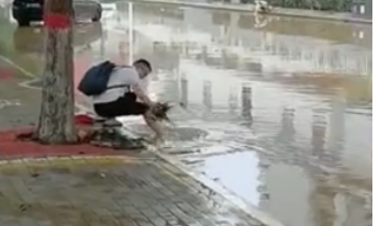 遭受特大暴雨袭击的郑州市,道路大量积水。阳光人寿河南分公司为确保员工安全,紧急疏散公司员工。银保本部姜文超在回家途中,看到马路积水严重,无人的街道上众多车辆泡在水中。犹豫片刻,他决定贡献自己的力量。没有任何工具,他蹲下身来,徒手伸进市政下水口中,对堵塞的下水口进行清理。