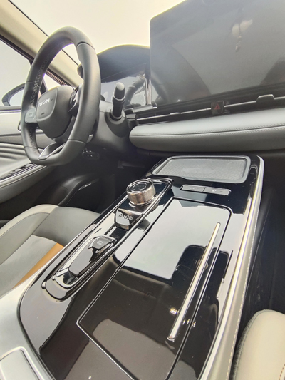 来到车内,硕大的14.6英寸中控智能大屏很吸引眼球,搭配全液晶仪表,显示清晰,内容完整。整体的车技UI设计非常有未来感,触控会有声音回馈,反应速度也很快,没有卡顿的感觉,使用感良好。虽然绝大部分的车载功能都集成在这块触摸屏在驾车时触控不便,但完善的“你好北鼻”的语音系统能极大方便驾驶人,全部的车载空能都可以通过语音识别来操作,这要点个赞!